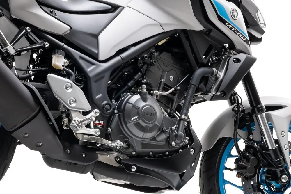 A Yamaha MT-03 Connected segue com o motor bicilíndrico de 321 cm³ com refrigeração líquida e oito válvulas. Um de seus destaques, segundo a Yamaha, é a tecnologia DiASil, que contribui para menor vibração, melhor dissipação de calor e ganho de desempenho.
