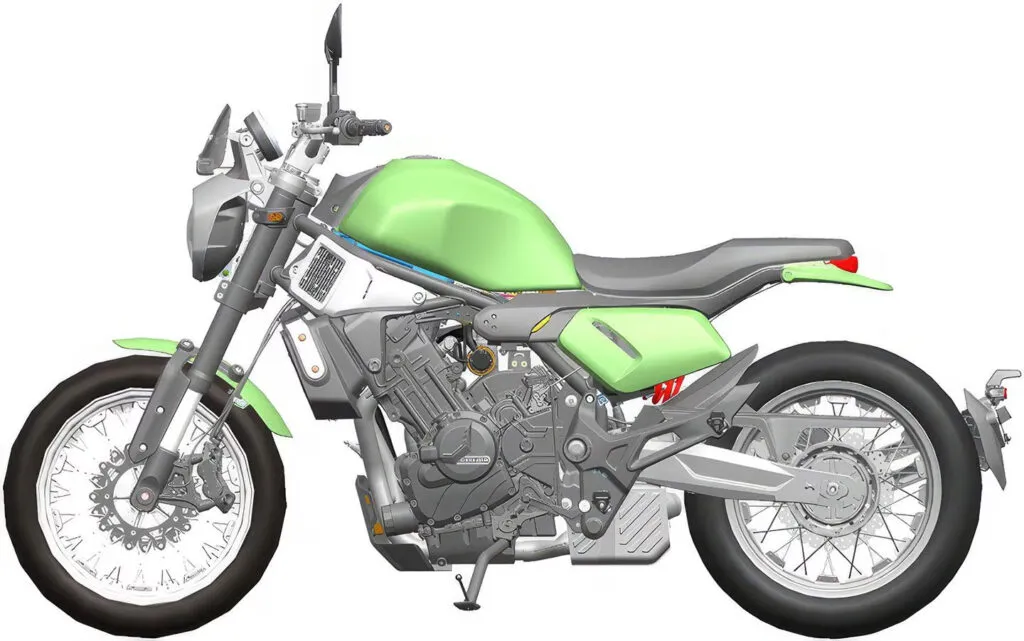 Além das informações que citamos acima, já sabemos que a grife da China registrou o modelo roadster que vemos aqui nestas imagens, e os rumores indicam que ela poderia se chamar Cyclone RE650 em seu país.