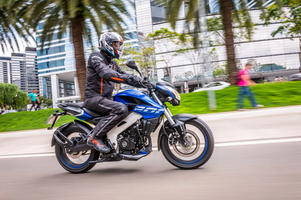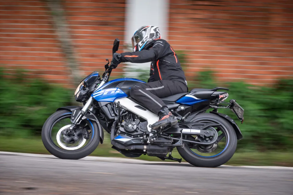 A Dominar 200 tem uma tocada surpreendente, e mostra muita semelhança com sua prima KTM Duke 200 na qual foi inspirada, mas a Dominar 200 troca a agilidade afiada da KTM Duke 200 por uma sensação mais equilibrada e pouco menos radical. As peças do conjunto também são menos exóticas do que a Duke 200, mas em uma estrada sinuosa a Dominar 200 pode ser tão envolvente e emocionante de pilotar quanto a sua inspiradora austríaca, algo que os pilotos irão apreciar.