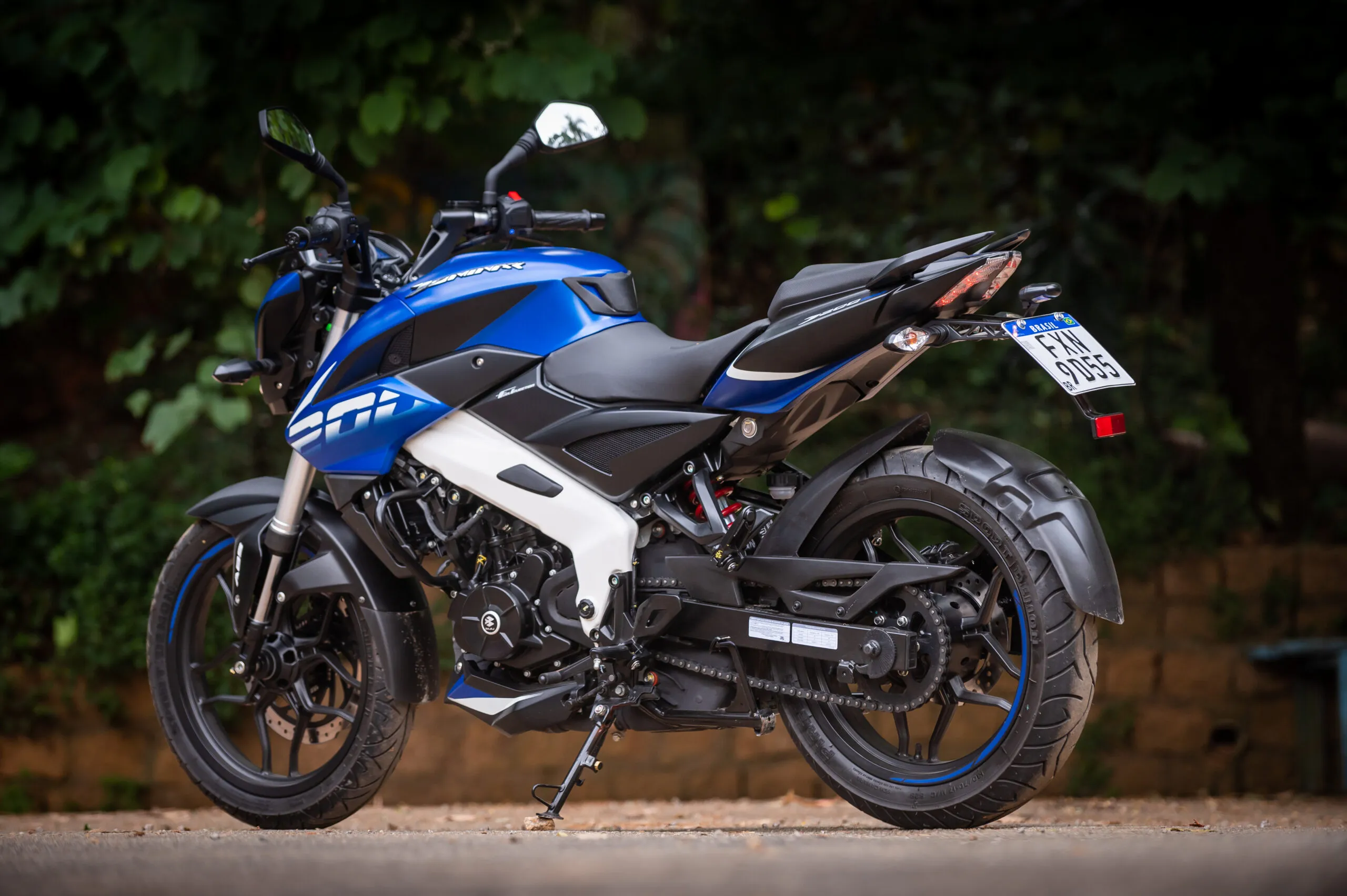 A Dominar 200 chega custando R$ 18.990 nas cores branca, cinza, vermelha e azul. Ela também recebe grafismos nos aros das rodas que são codificados com as cores da moto e dão uma aparência descolada. Outros diferenciais no visual são o spoiler embaixo do motor, o suporte de placa em metal e um paralamas traseiro maior e mais protetivo.
