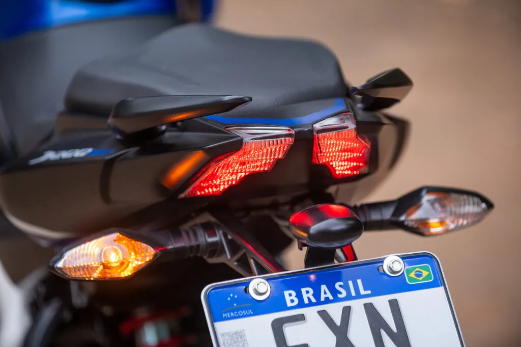 A qualidade do passeio é ótima, embora um pouco mais firme por conta do comportamento esportivo da moto. Os pneus Pirelli Sport Demon aderem bem no seco e transmitem um bom nível de confiança para uma tocada mais radical.