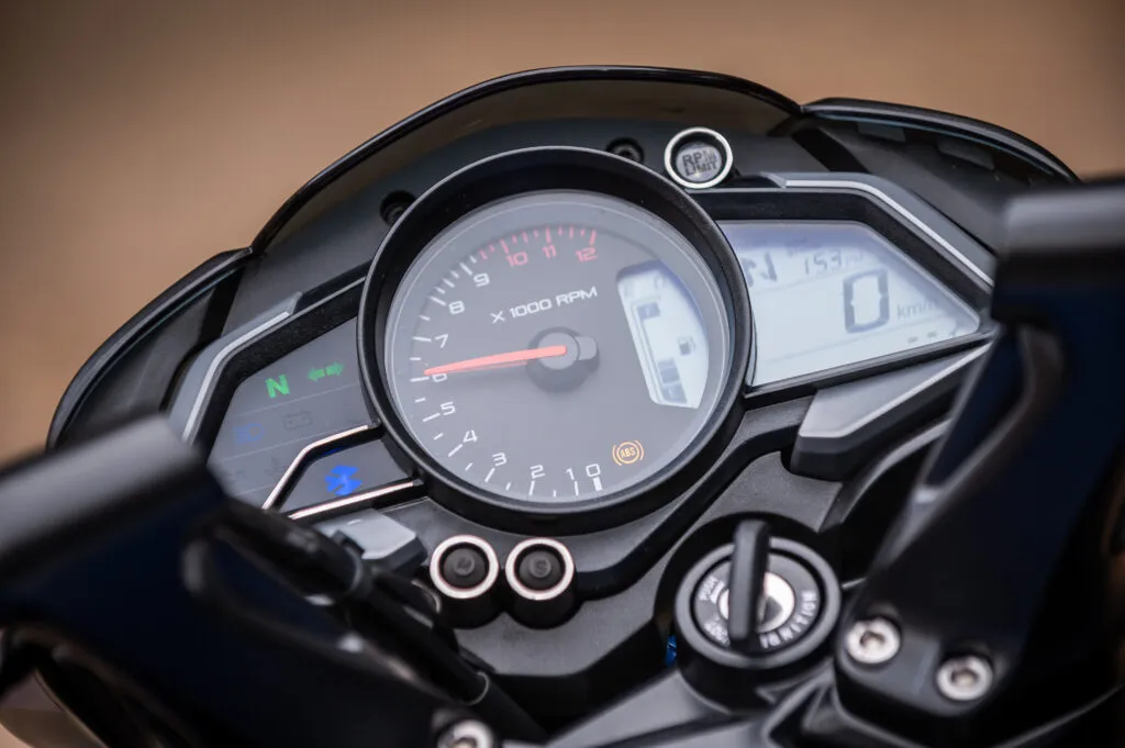 O pacote de equipamentos para o piloto é dos melhores e conta com um belo e completo painel com conta giros analógico bem ao centro ladeado à direita por um visor LCD convencional com velocímetro, odômetros total e parciais, indicador de marcha, indicador de combustível, relógio e computador de bordo com consumo médio e instantâneo. Ao lado esquerdo as luzes de advertência do ABS, farol alto, setas, marcha neutra, baixa pressão de óleo, alta temperatura do motor e baixo nível de recarga da bateria.