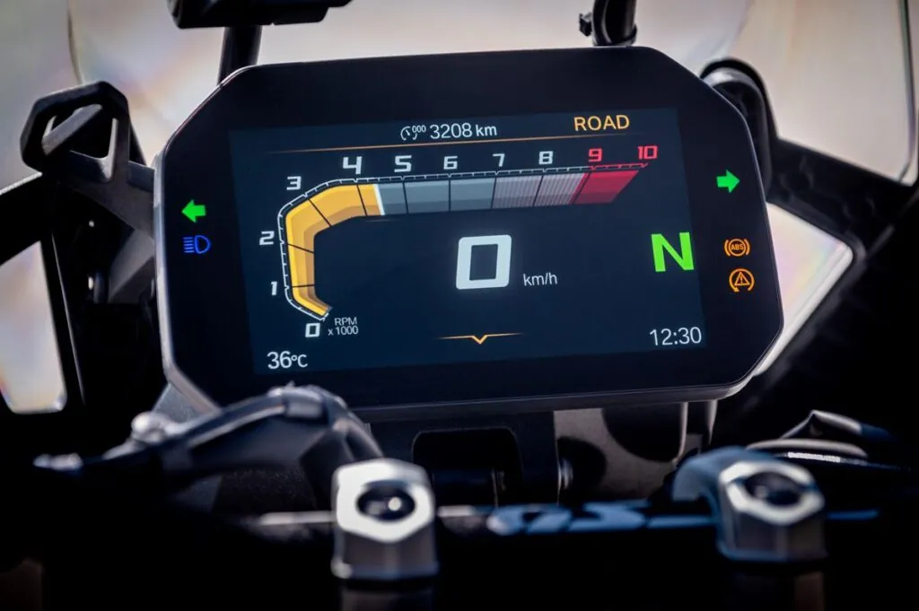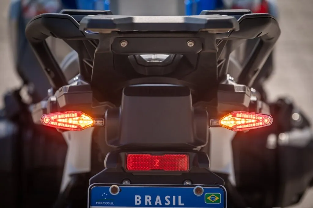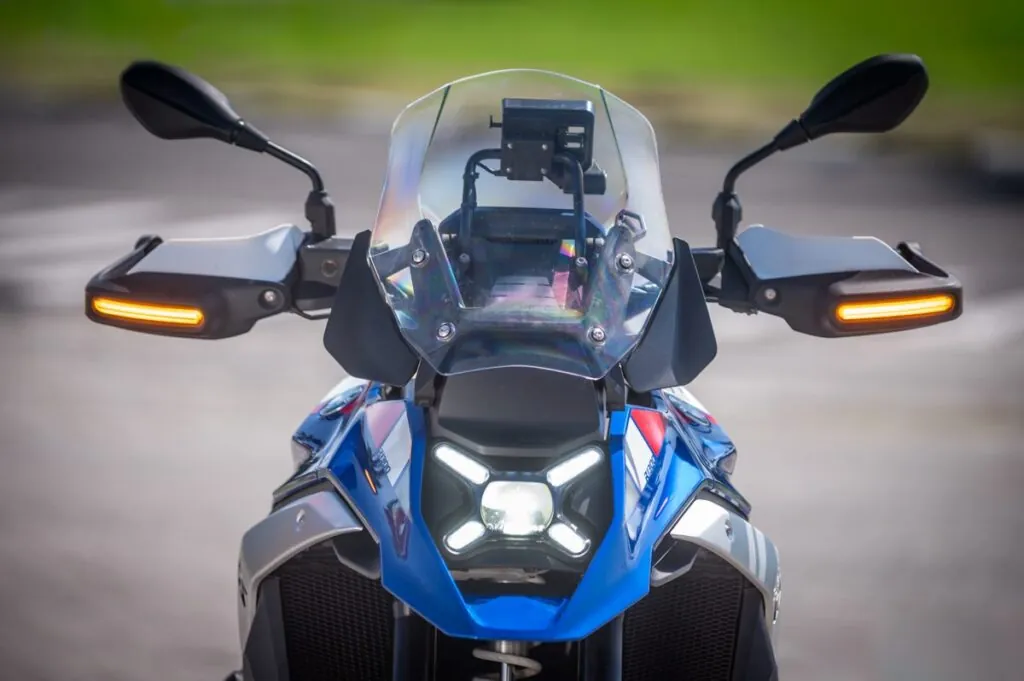 Dentre os equipamentos de luxo que toda moto premium merece há para-brisas ajustável, sistema de chave presencial (Keyless), monitoramento de pressão dos pneus (RDC), aquecedor de manoplas com três níveis e protetor de mãos integrados com piscas em LED.
