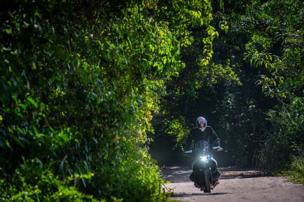 No trecho de terra me encantou a posição de pilotagem bastante natural quando se piloto em pé nas pedaleiras, com um fácil encaixe das pernas no tanque e a alta maneabilidade com precisão. Um conjunto muito equilibrado para quaisquer solicitações, capaz de proporcionar alta performance com muito conforto para ambos os ocupantes.