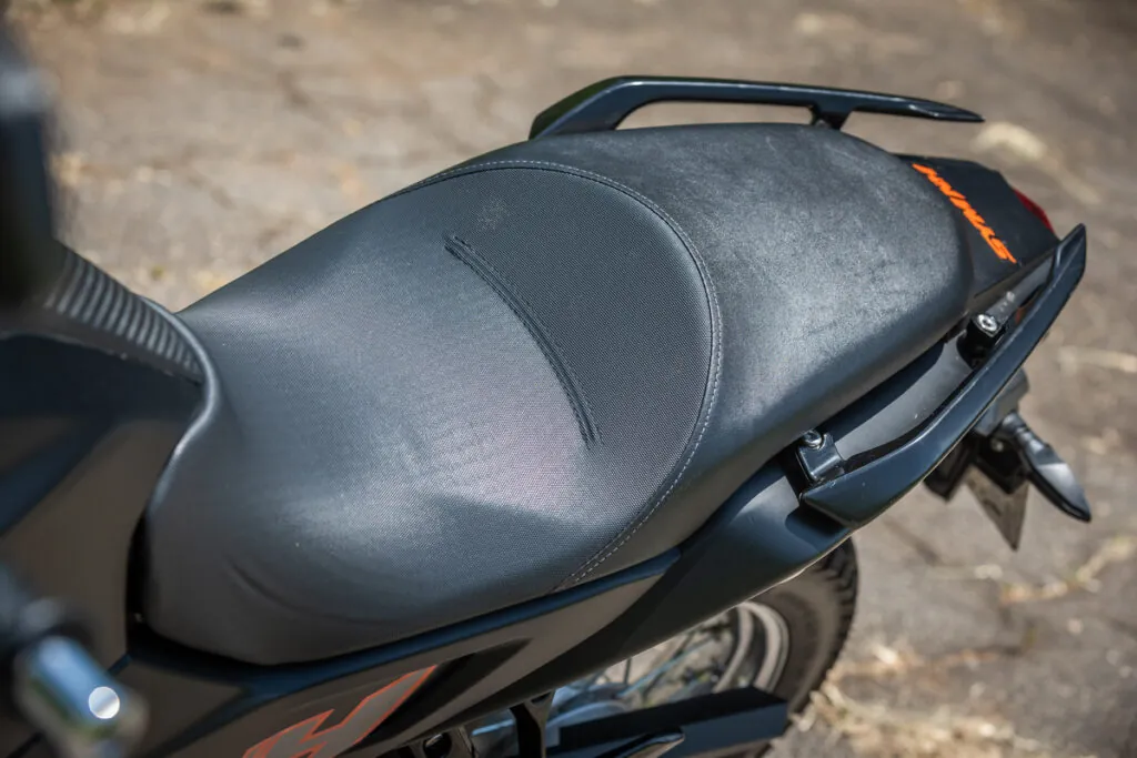 Após uma hora no percurso de estrada para a sessão de fotos achei que o assento não é lá dos mais confortáveis para longos trajetos. Um ponto a se considerar quando se pretende viajar com a nova trail NH 300 da Dafra é a capacidade do tanque.