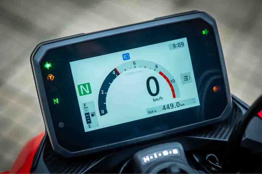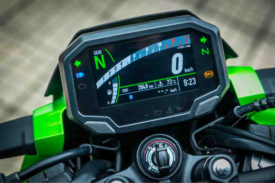 Kawasaki: O painel pode ser menos “colorido” em termos de layouts, mas traz a conectividade via aplicativo Rideology. Você pode ver quem está ligando no painel da moto e, após a viagem, conferir a telemetria do percurso no seu celular. Para o público geek, a Kawa leva a melhor.
