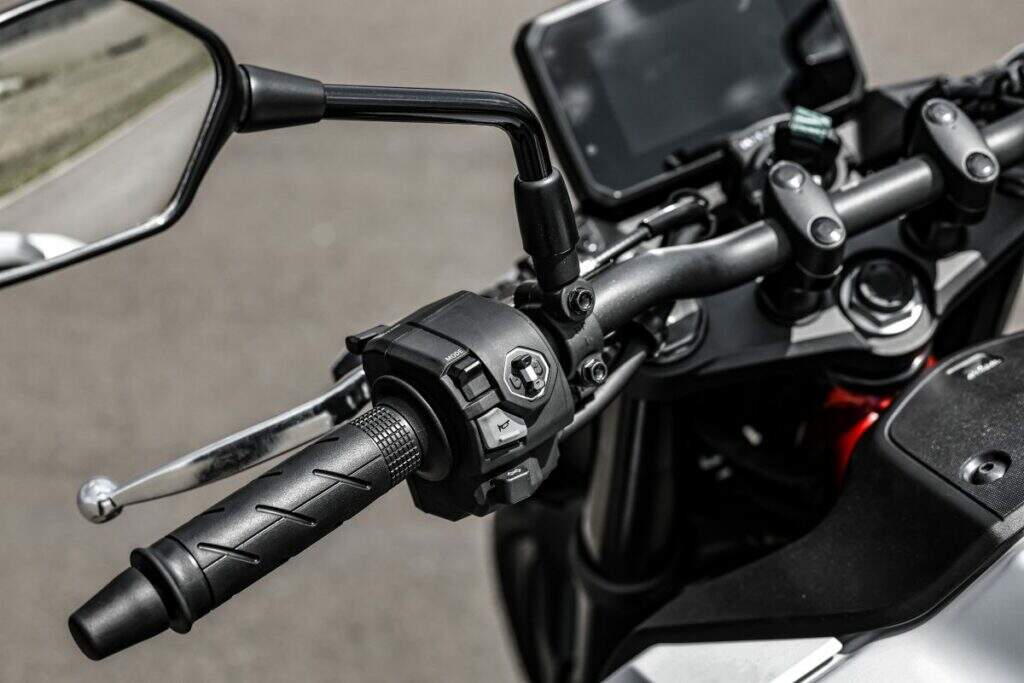 - Freios: O conjunto Nissin com pinças radiais e discos de 296 mm na dianteira e ABS é potente e oferece excelente tato, transmitindo segurança.
