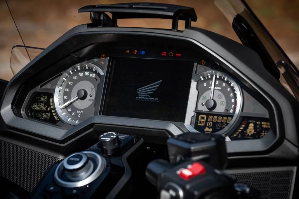 A Honda GL 1800 Gold Wing Tour é a primeira e única motocicleta a contar com um sistema de airbag de fábrica, inovação que garante segurança extra para o piloto e o passageiro em situações de risco e possíveis colisões. O painel TFT de 7 polegadas possui integração com Apple CarPlay e Android Auto.