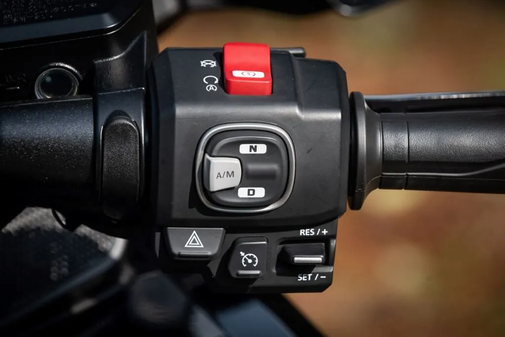 São 17,34 kgf.m de torque máximo a 4.500 rpm, suficientes para empurrar a Gold Wing e seus aproximados 390 kg em ordem de marcha com ótima desenvoltura em qualquer solicitação. Os quatro modos de condução (Tour, Sport, Econ e Rain) ajudam a domá-la de acordo a situação e atuam sobre ABS e freio-motor.