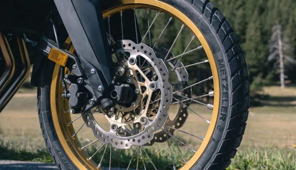 Além disso, os freios, que apresentam pinças paralelas de dois pistões ao invés de 4 radiais, proporcionam uma sensação mais suave com o pneu dianteiro estreito.