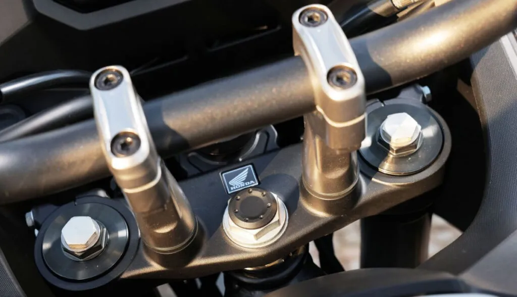 O canote é de alumínio forjado para maior resistência, e o braço oscilante, que é de alumínio em vez de aço, tem as mesmas peças fundidas da Africa Twin. A direção atinge um raio de virada de apenas 2,6 m ao rodar o guidão 42°.