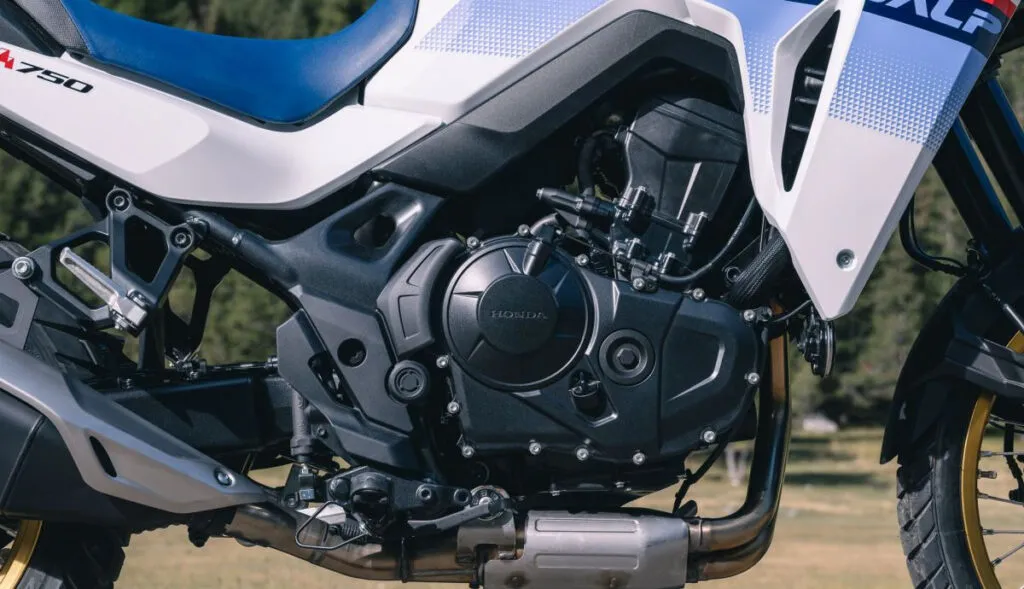 Se a Hornet original tinha um propulsor quatro em linha, a Transalp tinha um V-twin, e agora ambos compartilham o mesmo “gêmeo” paralelo com sincronismo do virabrequim de 270 graus.
