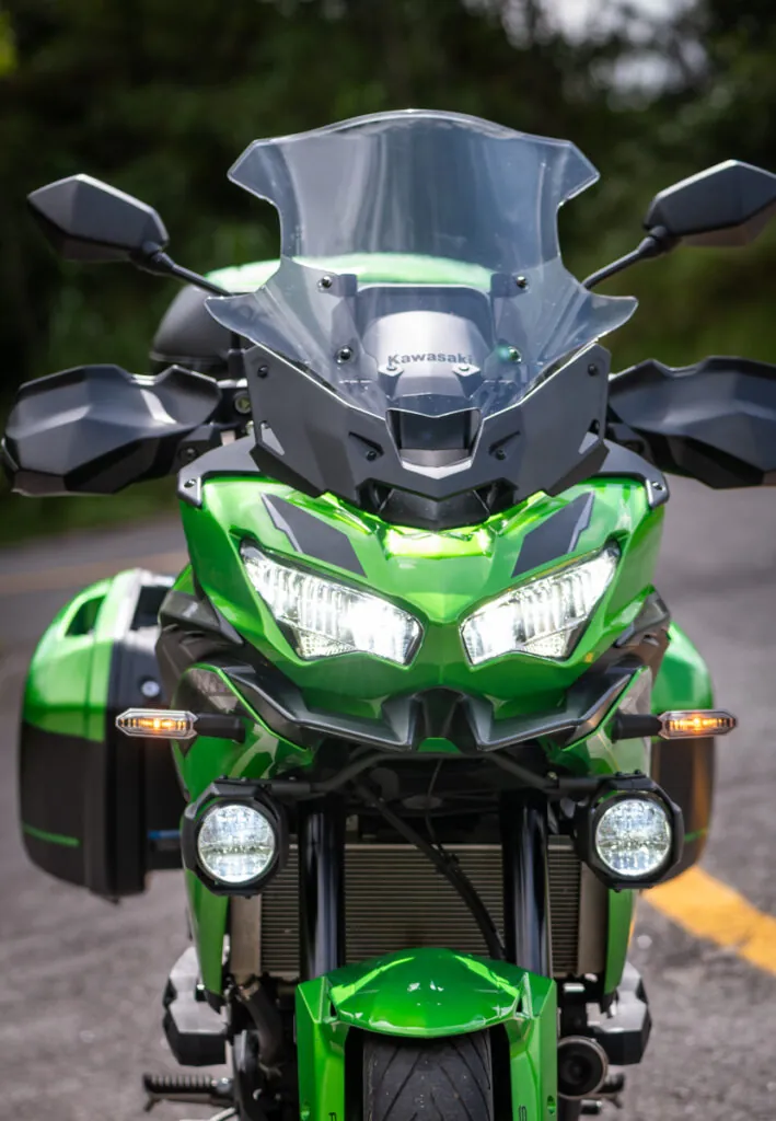 A Versys 650 é conhecida pela sua versatilidade e conforto, uma verdadeira crossover montada com rodas de 17 polegadas que comporta os ótimos pneus esportivos das Supersport médias, bem como pneus de uso misto com perfil aventureiro para encarar aquela viagem com estrada de chão batido mundo afora. Eu sou fan indiscutível desses motores de dois cilindros da Kawasaki que equipam toda a linha de 650 cilindradas, como as Z650 e Z650 RS, a Ninja 650, a Vulcam 650 e essa Versys 650 TR que apresento neste teste.