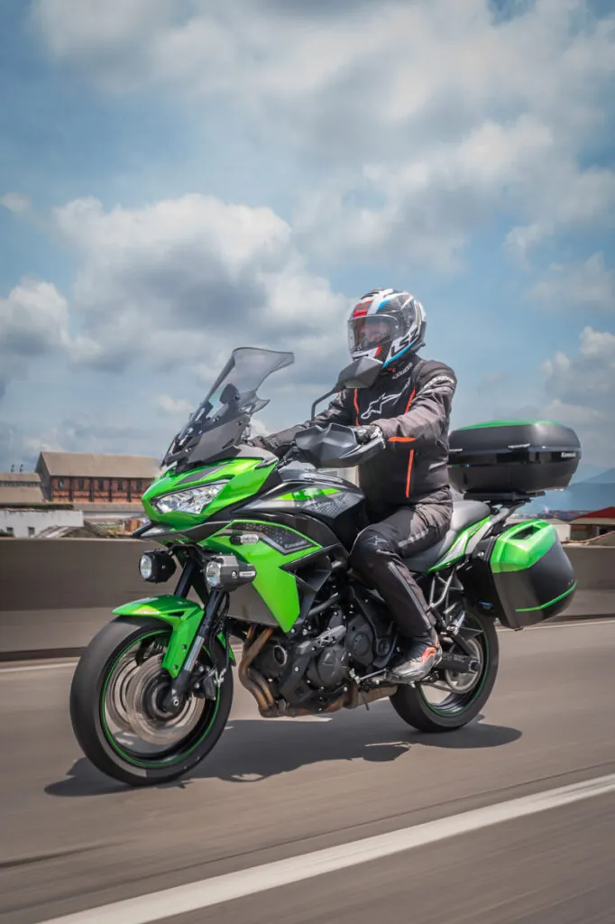 A Kawasaki Versys 650 satisfaz na íntegra, tem um corpo esportivamente invocado, muita agilidade na cidade, muita performance nas curvas, a frenagem é potente e modulável, enquanto o motor tem o poder que faz você se entreter nas arrancadas e saídas de curvas. Ela também é ótima na estrada quando se leva em conta que o motor vibra pouco, é forte e elástico.