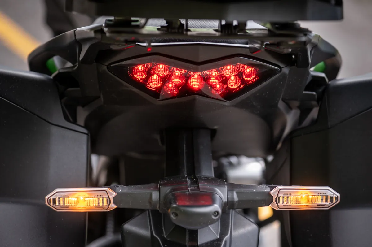 A Versys 650 chega remodelada com um novo design no bico dianteiro e conta com iluminação total LED. Uma pequena lapidada na carenagem dianteira que rejuvenesceu a máquina idealizada em 2007. Esta Versys 650 Tourer que apresento custa R$ 58.990, com malas laterais e top case, protetores de mão, proteção de tanque, amplo para-brisa fumê, tomada 12V, protetores de motor tipo slider, faróis auxiliares em LED e indicador de marcha, que também é padrão na versão normal, que é oferecida por R$ 51.990. O painel agora é TFT colorido e com conectividade, e chega também um novo controle de tração KTRC de série para as duas versões.