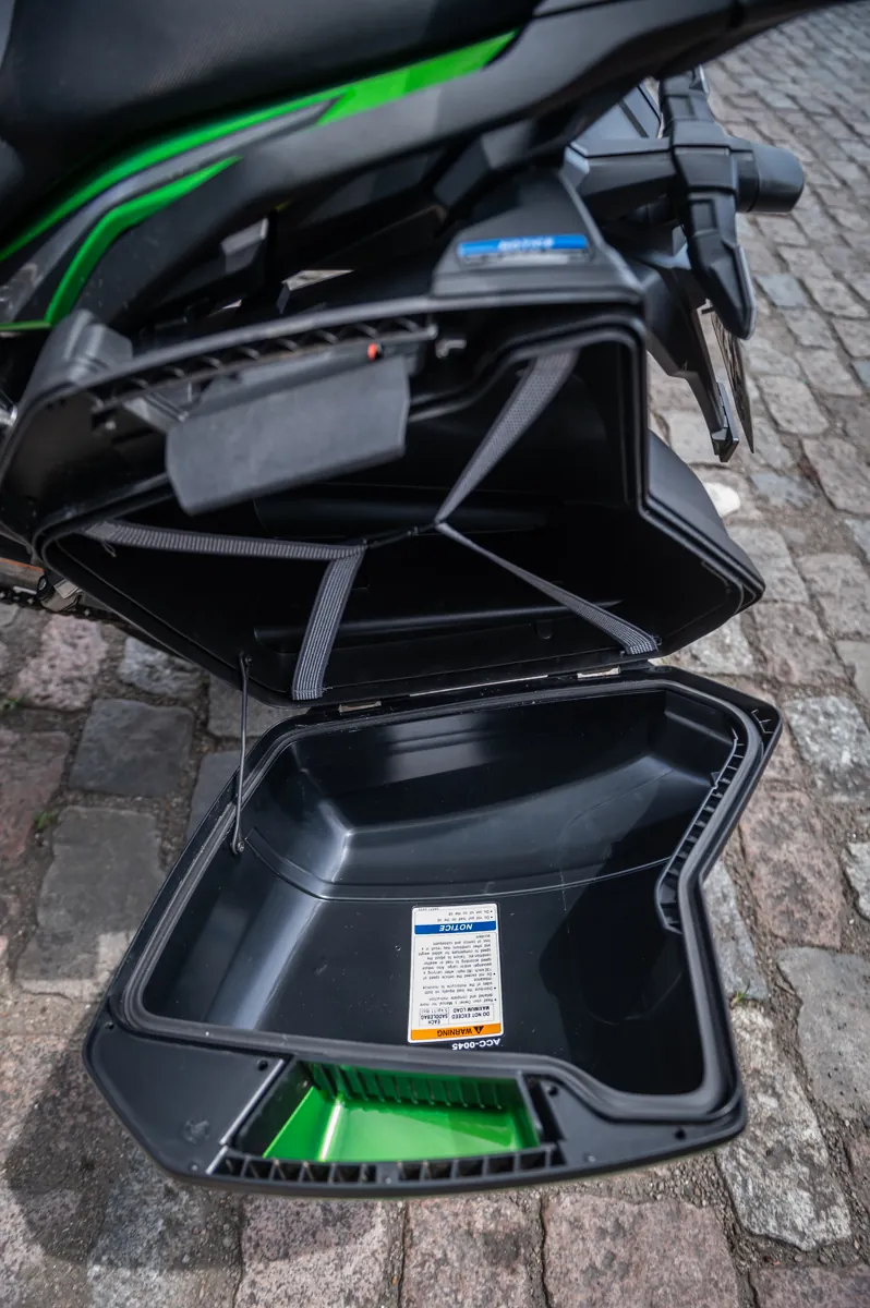 Consegui médias de consumo de 25 km/l na cidade e 30 km/l na rodovia a 100 km/h, dados conforme o consumo médio mostrado no computador de bordo do belo painel TFT. As arrancadas são vigorosas, as saídas de curvas excitantes e a velocidade final ficou em 200 km/h sem as malas e 185 km/h com as malas e o para-brisa levantado. Como nos demais modelos da marca, há no painel um indicador ECO da melhor faixa de aproveitamento do consumo, por isso, atento a ele você consegue melhorar sua tocada visando economia de combustível.