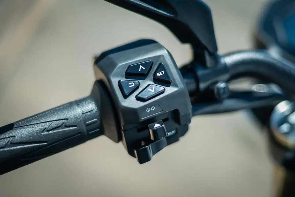 Os freios de ambas são eficientes, mas com comportamentos distintos. Na NS400Z, o sistema inicialmente parece “borrachudo”, exigindo mais pressão no manete, mas melhora significativamente após algumas frenagens mais fortes, ganhando tato e mordida. Na Guerrilla, o sistema Bybre é potente desde o primeiro toque, com um ABS bem calibrado que não intervém de forma intrusiva antes da hora.