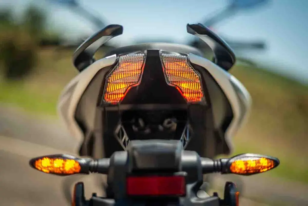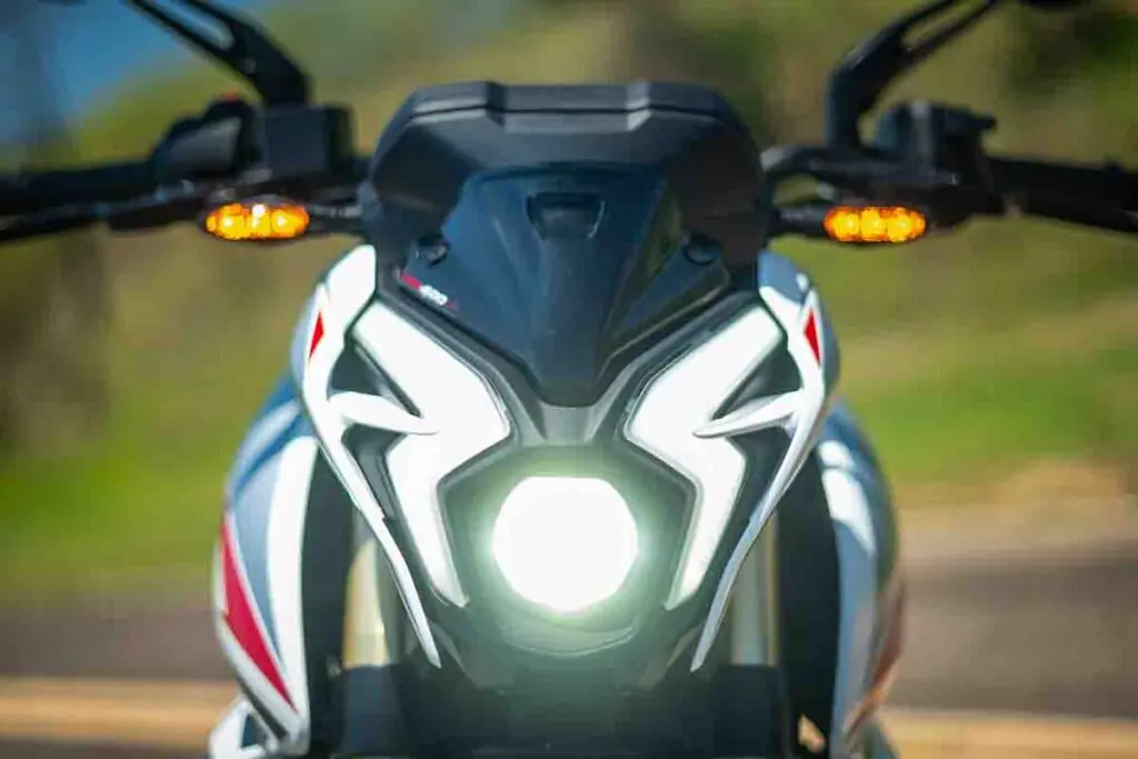 Na NS400Z, a proposta é agressiva. As pedaleiras recuadas e o guidão baixo forçam o tronco do piloto para frente, sobre o tanque, carregando o peso no eixo dianteiro. É a posição clássica de ataque, perfeita para uma sessão de curvas, mas que cobra seu preço em trajetos urbanos longos ou congestionamentos. O painel TFT da Bajaj é moderno e visualmente atraente, compondo o design feroz reforçado pelo farol em LED com assinatura em “Z”.