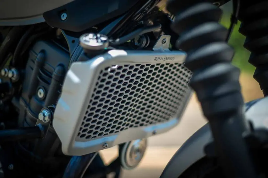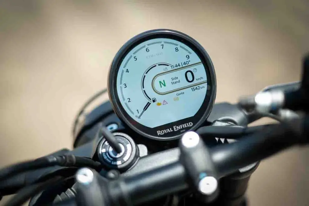 No quesito eletrônica, a Bajaj não economizou. A NS400Z vem equipada com acelerador eletrônico (ride-by-wire) e quatro modos de pilotagem (Rain, Road, Sport e Off-Road). O modo Sport permite desligar o controle de tração, enquanto o modo Off-Road desabilita o ABS traseiro, permitindo uma condução mais livre. Essa eletrônica é um diferencial competitivo enorme, oferecendo uma camada extra de segurança que a Guerrilla ainda não possui, já que a Royal se mantém mais purista, focando no ABS de dois canais assinado pela Bybre.