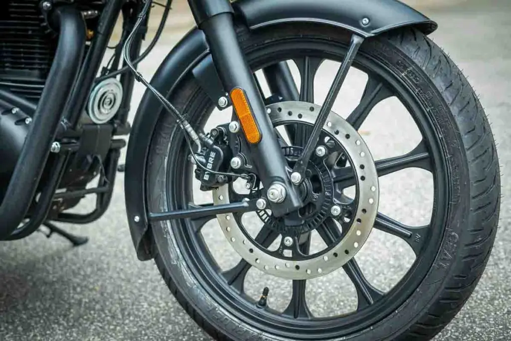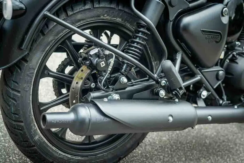 A Classic 350 compartilha o conjunto mecânico da Meteor e da Hunter 350. Estamos falando de um motor monocilíndrico de 350 cm³, comando SOHC de duas válvulas e refrigeração mista (ar e óleo). O chassi é do tipo berço duplo, apoiado por bengalas convencionais de 41 mm na dianteira e dois amortecedores na traseira. Para garantir a segurança, o sistema de freios a disco em ambas as rodas conta com assistência de ABS de canal duplo.