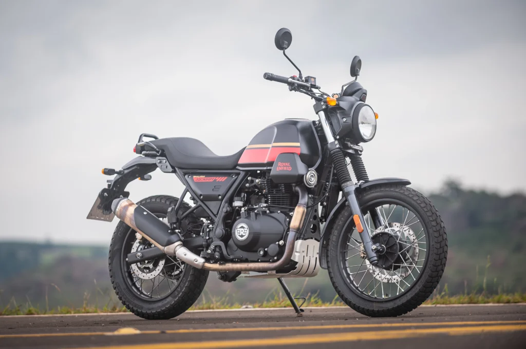 A Royal Enfield Scram 411 é a motocicleta da marca indiana para representar a categoria scrambler, que combina capacidade de aventura com muito estilo e acessibilidade.