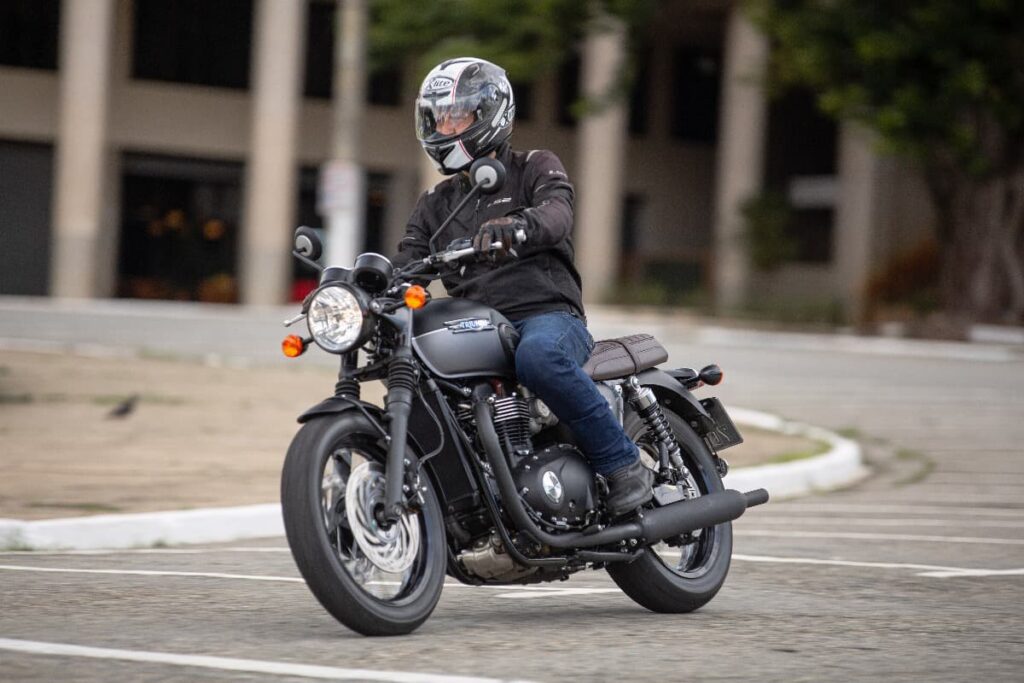 A Bonneville é uma moto tranquila, apesar da pegada do motor entusiasmar, ela é boa para circular pelo trânsito urbano e também para contornar curvas em estradas sinuosas, lógico sem a mesma a agilidade e precisão de uma naked com perfil mais esportivo, mas ela oferece segurança se você gosta de inclinar sua moto nas curvas, e os pneus Pirelli Phantom Sportscomp têm boa aderência e só deixam a desejar se você gosta de ir ao limite.