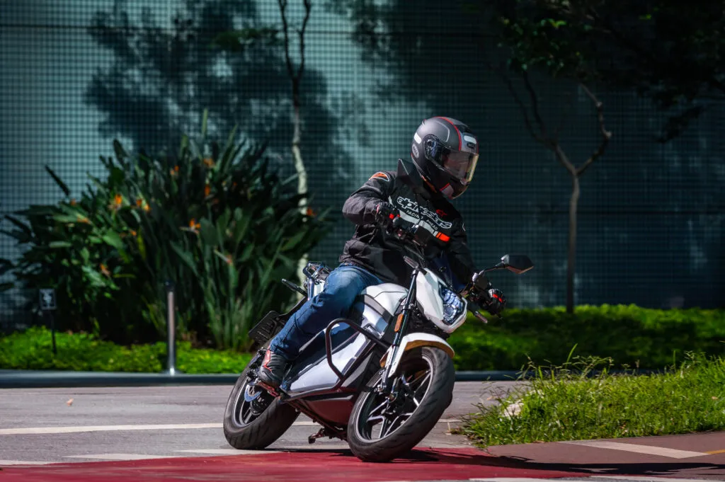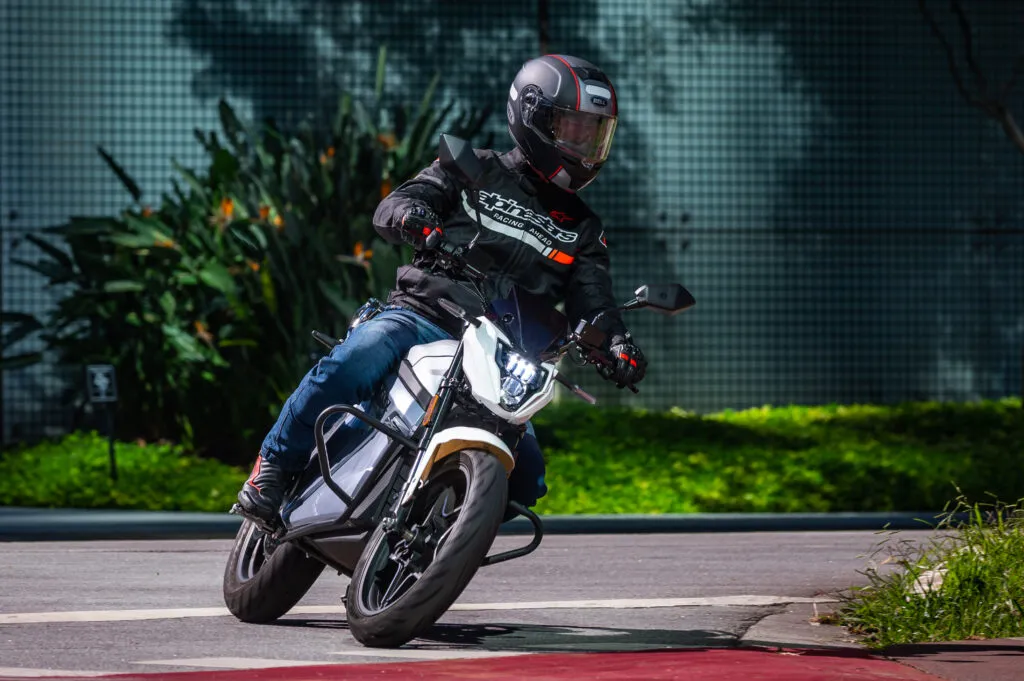 As motos elétricas têm algumas particularidades em comum e a EVS não é diferente, O torque imediato nas acelerações é bem divertido e ela ganha velocidade rapidamente no modo Sport.