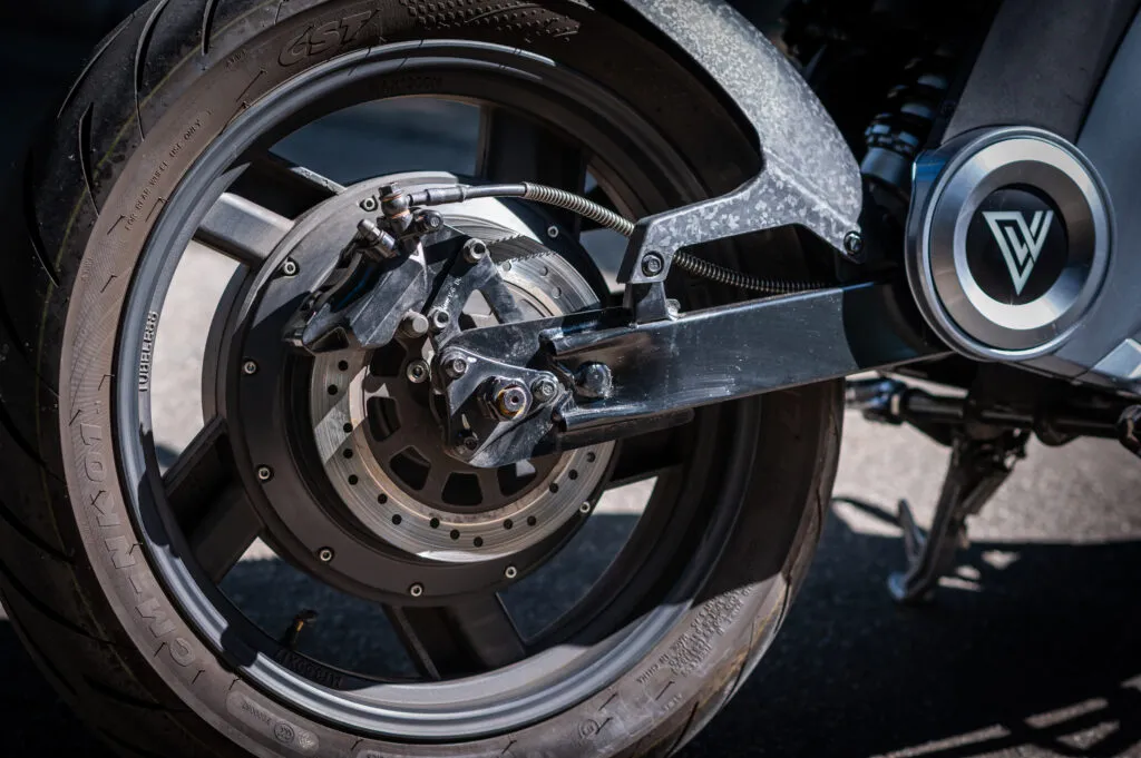 Para você entender melhor como a roda é o próprio motor, posso dar um exemplo bem simples. Pense em um equipamento elétrico como o motor de um liquidificador, por exemplo, onde a máquina está parada e apoiada em uma base, e quando o motor é ligado o eixo começa a girar. No caso da roda da moto, o eixo está fixado na balança e a carcaça do motor, que no caso é o aro da moto, é quem gira.