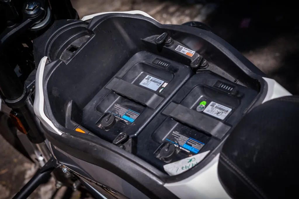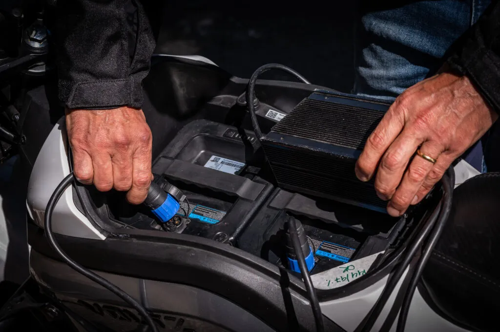 Ambas levam o carregador de tomada num compartimento dentro do falso tanque de combustível. O carregamento total da bateria leva cerca de 5 horas e o modelo com duas baterias recarrega ambas de forma simultânea e com o mesmo tempo. As baterias também podem ser facilmente retiradas sem uso de ferramentas para serem recarregadas dentro de casa.