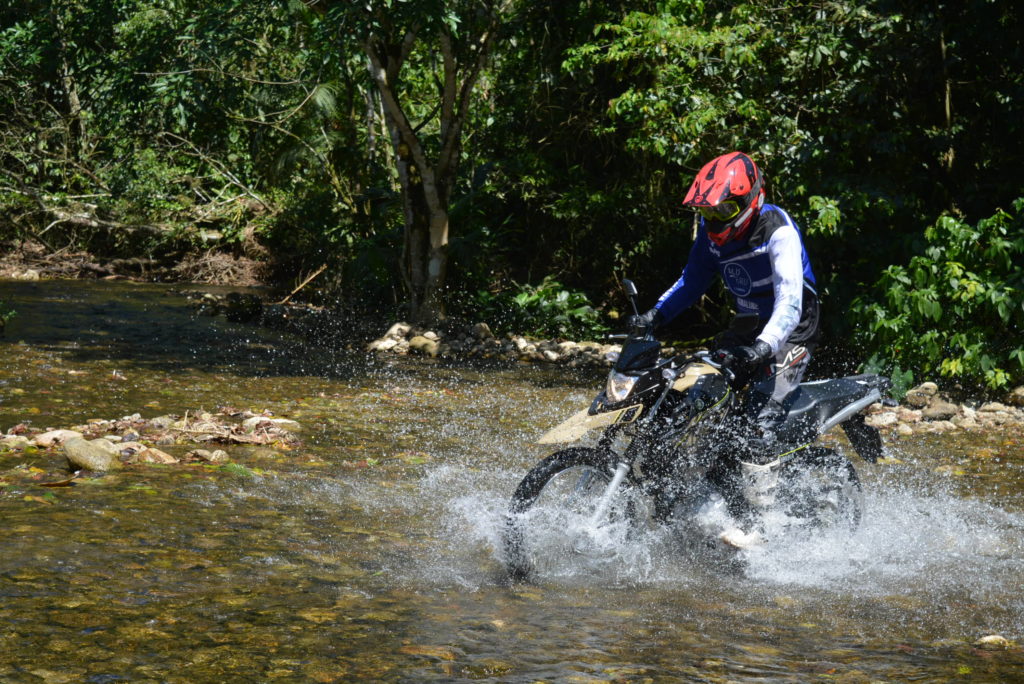 Nas suspensões, o garfo telescópico de 33 mm mantém a firmeza adequada no asfalto e tem equilíbrio perfeito para enfrentar um fora de estrada nem tanto radical quanto a buracos profundos ou pedras enormes. Na traseira o sistema Monocross tem um amortecedor sem opção de ajustes, mas muito bem calibrado, garantindo conforto para enfrentar qualquer terreno. Com garupa leve, o comportamento da ciclística muda minimamente, prova do bom trabalho da suspensão traseira.