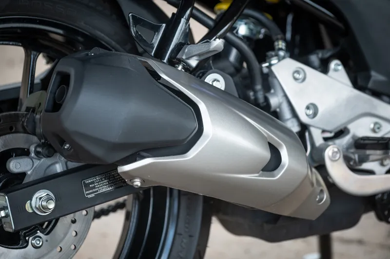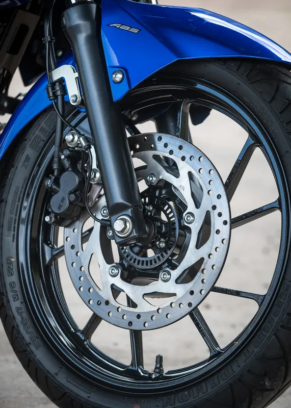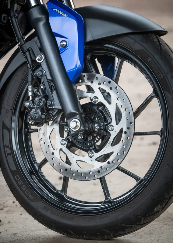 A suspensão dianteira é a mesma que emprestou para a FZ15, garfo telescópico de 41 mm e curso de 130 mm, enquanto a traseira tem a balança tipo Monocross com um curso de 120 mm. O câmbio permanece o mesmo, com sistema de transmissão manual e 5 velocidades.