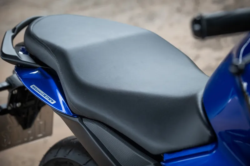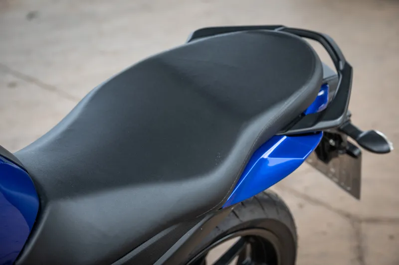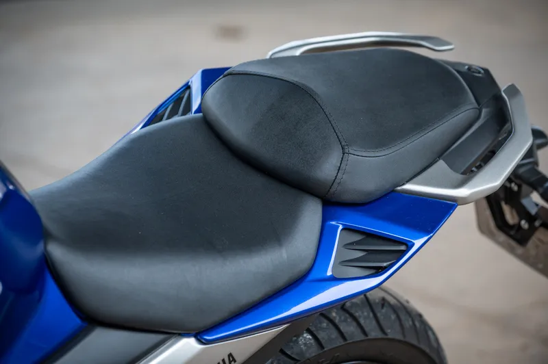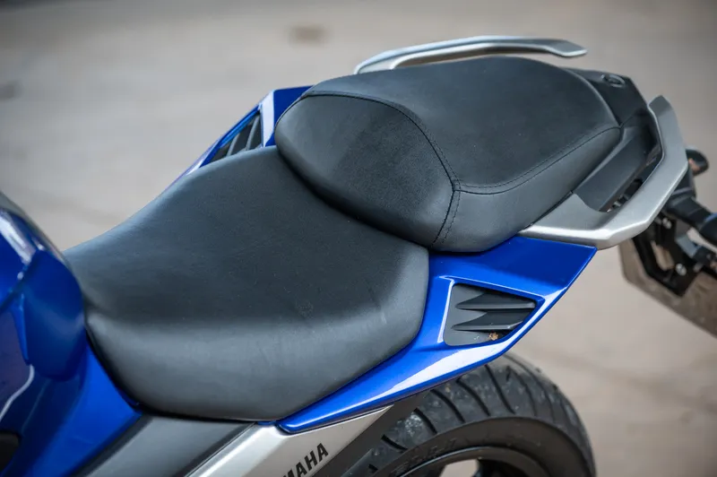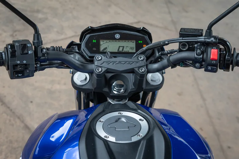 Entre os componentes que as diferenciam, há alguns que a FZ25 tem e que poderiam fazer ainda mais sucesso se também fossem instalados na FZ15. É o caso do banco bipartido em dois níveis e do ABS na roda traseira. Do mesmo modo, o bocal do tanque do tipo aeronave e o suporte do guidão em alumínio com o nome da moto gravado.
