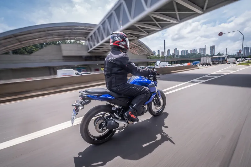 Na estrada a FZ15 se mostrou muito divertida e eficaz contornando curvas, sempre com decisão e firmeza, e os pneus Pirelli Diablo Rosso ll garantem excelente aderência e muita segurança na pilotagem.