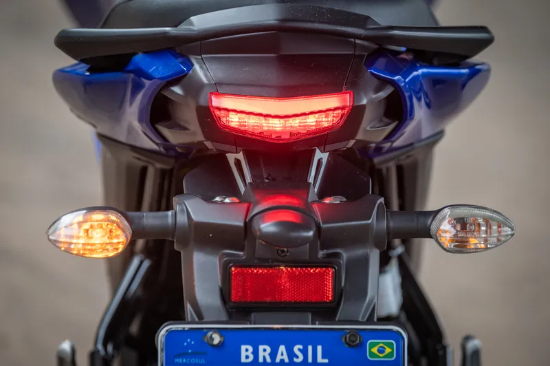 O ABS é só na roda dianteira e não é muito intrusivo, permitindo frenagens fortes com segurança. Só é preciso mais sutileza ao acionar o pedal do freio traseiro para evitar o travamento da roda. O motivo: o ABS é só na dianteira.