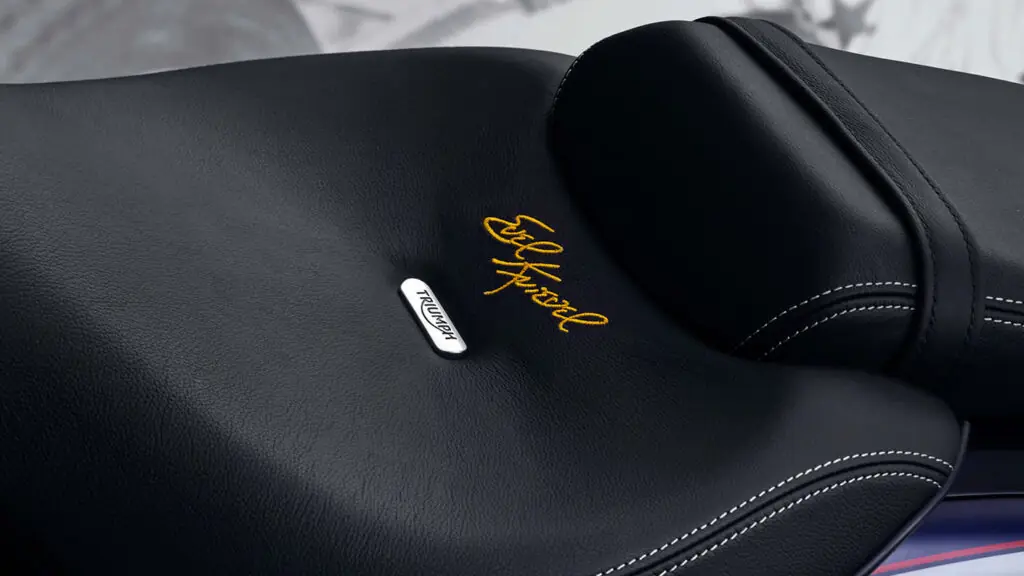 Com assinaturas da lenda americana bordadas em ouro nos bancos, as duas versões da Rocket 3 Evel Knievel Limited Edition oferecem conforto e estilo.